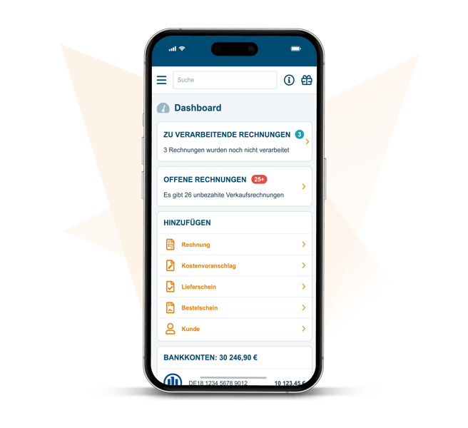 Verwenden Sie Ihr Smartphone, um mobil E-Rechnungen zu erstellen. Der Versand erfolgt sicher über Peppol oder andere Netzwerke für E-Rechnungen.