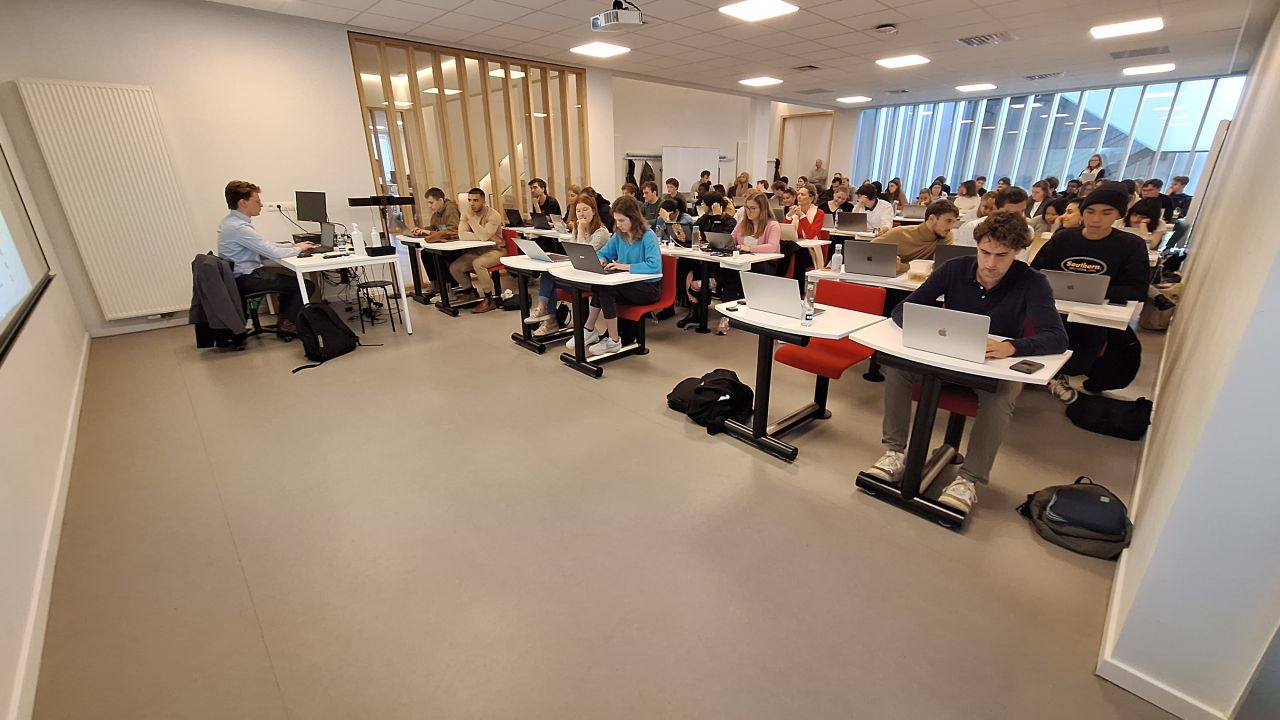 A good eighty eager students from the field of commercial sciences and business administration were there to our colleagues. After arriving in the auditorium, Dirk immediately kicked things off with the theoretical background of digital invoicing and Peppol. Among other things, he discussed the development of the technology, its benefits and the future of processing digital invoices in a structured manner.