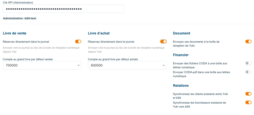 Remplir la clé API est facultatif mais offre des options supplémentaires telles que la synchronisation des comptes comptables, des clients et des fournisseurs.