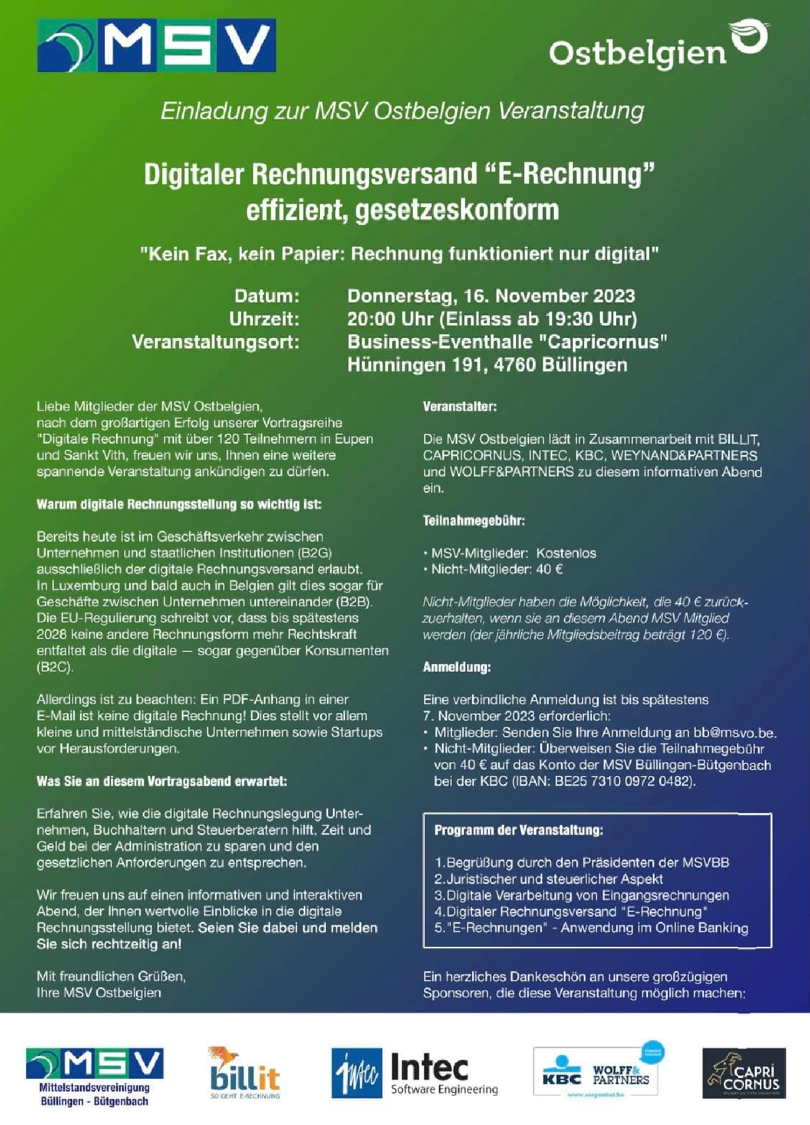 La série de conférences sur la facturation électronique que Thomas Philipp Reiter a organisée en collaboration avec la MSV (pendant germanophone de l'UCM) à Eupen et à Saint-Vith a été un grand succès.