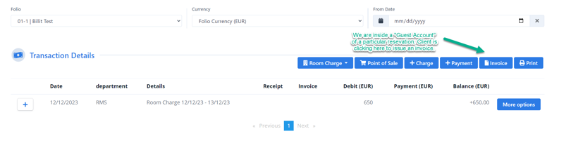Stap 1: Ga in Mini Hotel naar de reservatie waarvoor je een factuur wil creëren en klik op ‘Invoice’.