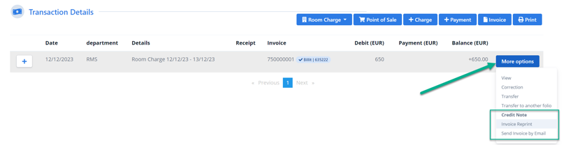 Via dezelfde knop ‘More options’ heb je ook de mogelijkheid om een creditnota aan te maken.
