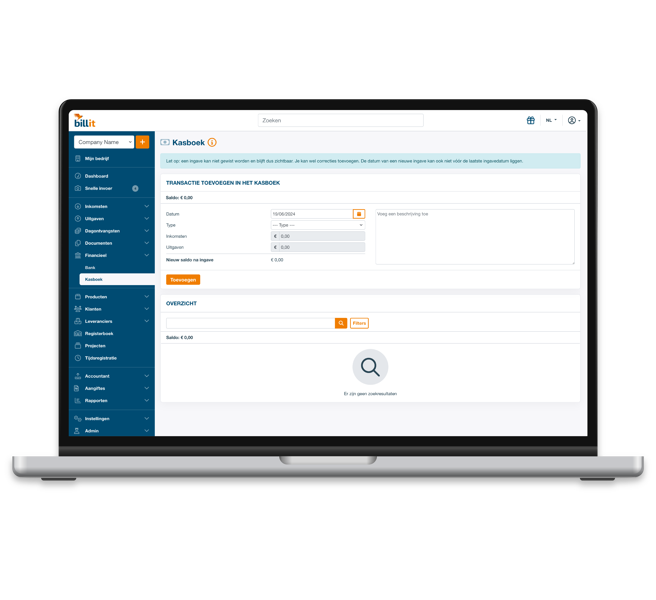 Registreer makkelijk en overzichtelijk al je cashontvangsten en -uitgaven.