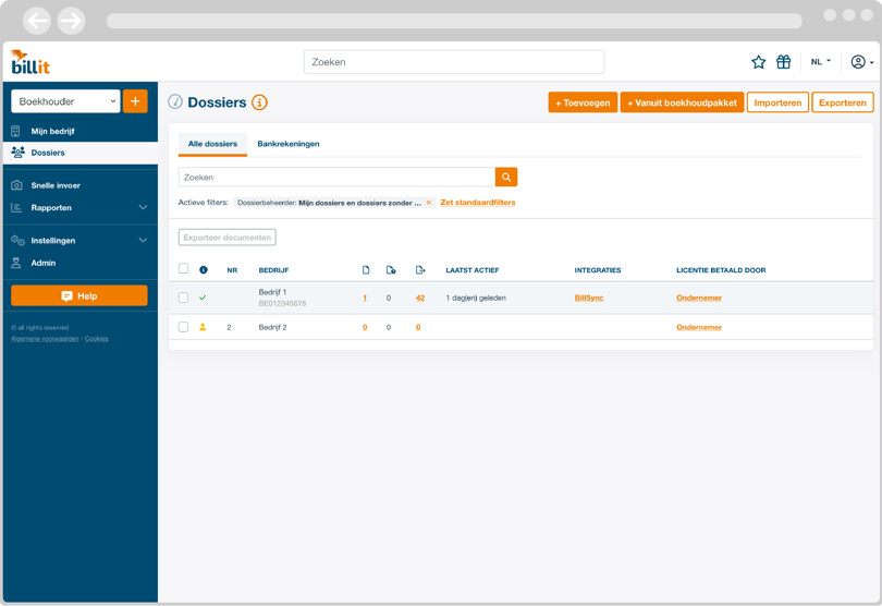 Goed nieuws voor boekhouders: we hebben het overzicht van de klantendossiers in het Billit-accountantsplatform verbeterd. Voortaan krijg je in één oogopslag een overzicht van alle dossiers en van alle bankrekeningnummers van je klanten-ondernemers. Daarnaast zijn er ook enkele nieuwe functies om je werk nog makkelijker te maken.